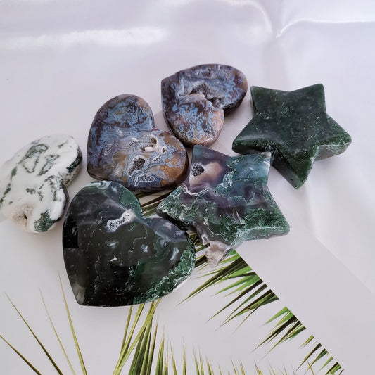 حجر شقرا كريستال القلب والنجمة من العقيق الطحلبي الطبيعي مقاس 2.2 بوصة