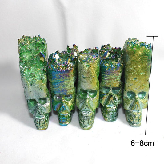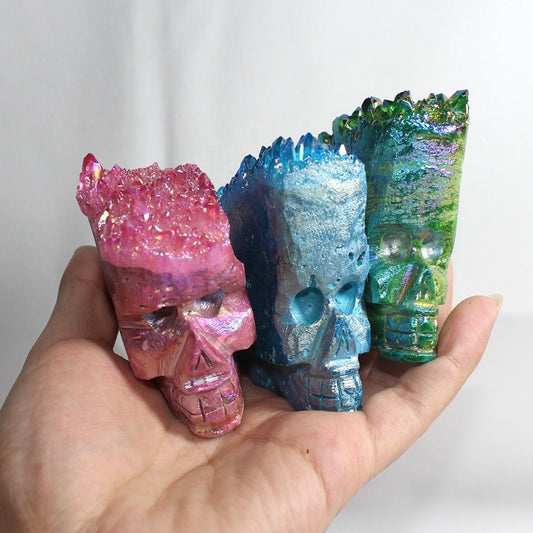 جماجم من الكريستال الطبيعي المنحوت يدويًا والمطلية بالكهرباء بوزن 100-150 جرام