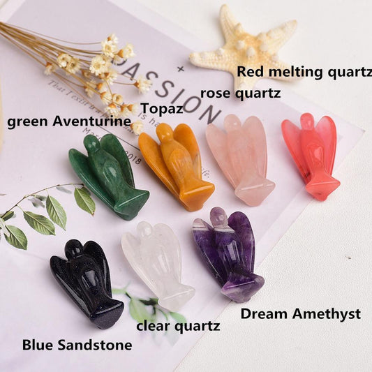 ملاك كريستالي من الكوارتز الوردي بمقاس 1.5 بوصة على شكل ملاك بكاء مصنوع من الكريستال المنحوت في الجيب