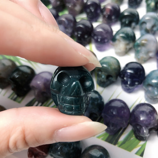 تمثال جمجمة كريستال مقاس 1 بوصة مصنوع يدويًا من الأحجار الكريمة، تمثال صغير قابل للتجميع
