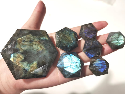 حجر اللابرادوريت الطبيعي الكريم كابوشون سداسي الشكل