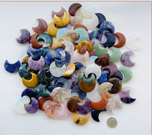 حجر الشفاء الطبيعي المنحوت على شكل قمر بلوري
