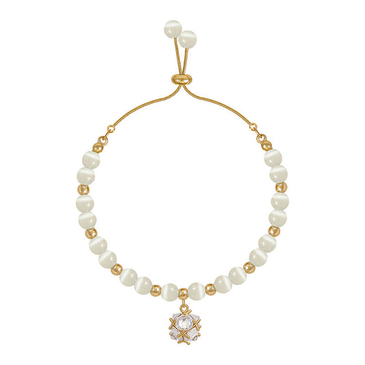 أساور من الخرز الذهبي على شكل عين القطة المحظوظة مع صدفة الكريستال