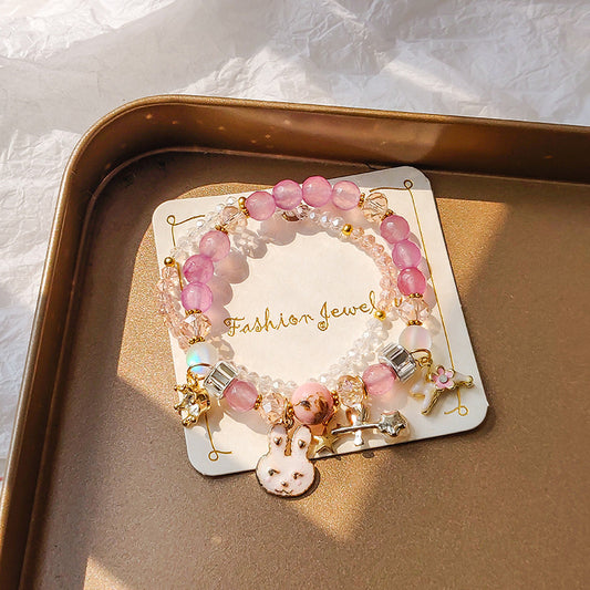 مجموعة أساور فاخرة من الخرز الكريستالي للنساء من المصنع بسعر الجملة مع مجموعة أساور من الخرز الطبيعي المطاطي العتيق للنساء