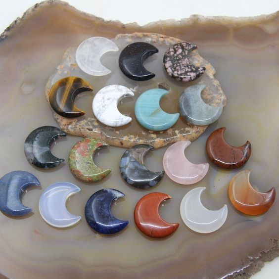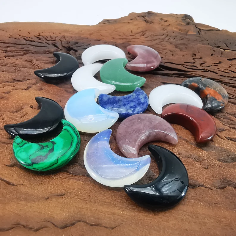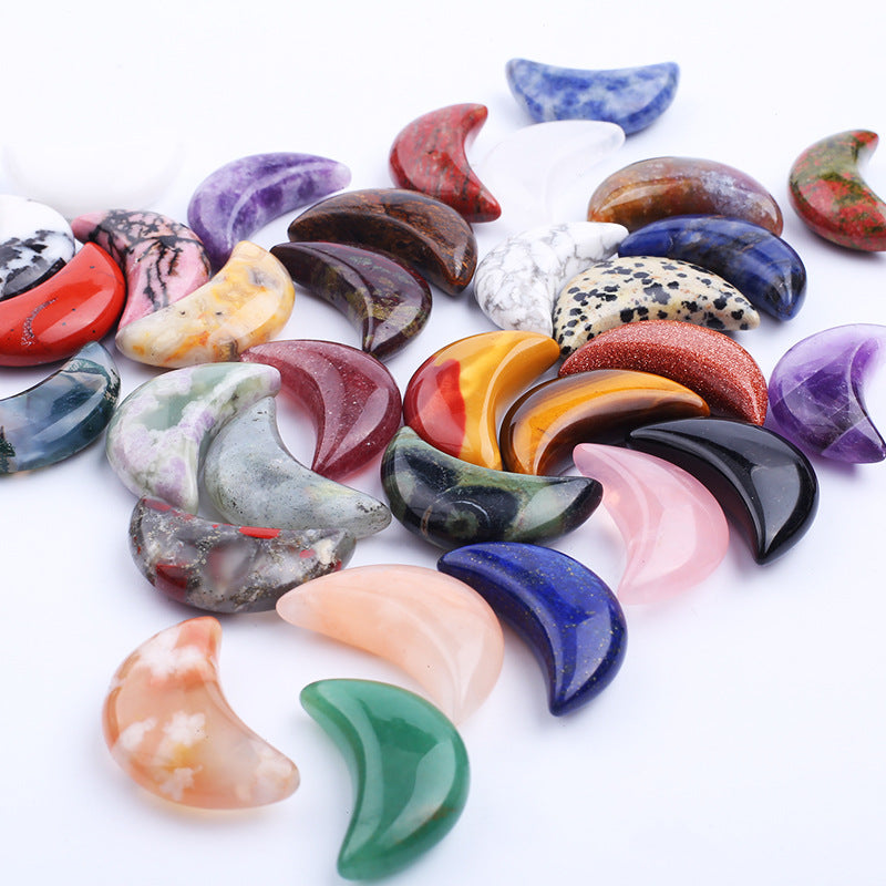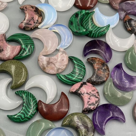 حجر الشفاء الطبيعي المنحوت على شكل قمر بلوري