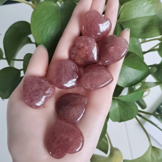 Natural Red Strawberry Quartz Pocket Stone Crystal Heart