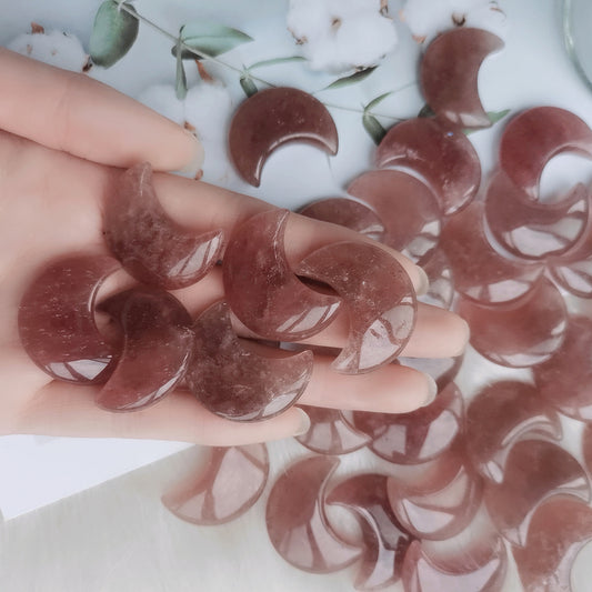 Natural Red Strawberry Quartz Healing Crystal Moon