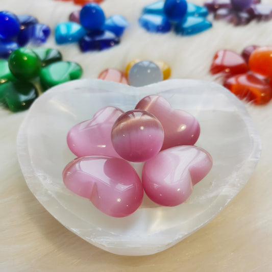 Natural Crystal Healing Cat's Eye Polished Stone Sphere Rock Collection Heart