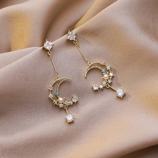 Moon and Star Earring Celestial Pearl Earrings Night Sky Drop Earrings