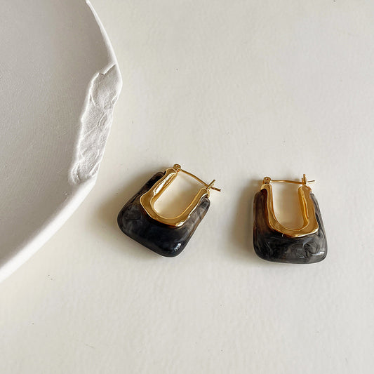 4 Colors Grey Amber Clear Resin Earrings Solid Acrylic Chunky Big Hoop Earrings for Women Square Vintage Gold Plated Jewelry Hot