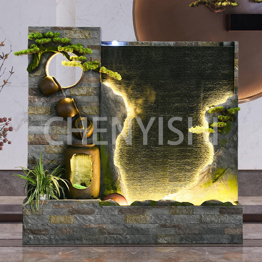 CHENYISHI Large Water Curtain Wall Rockery Flowing Water Fountain Decoration Living Room Office Courtyard Villa Fortune Feng Shui Wheel
