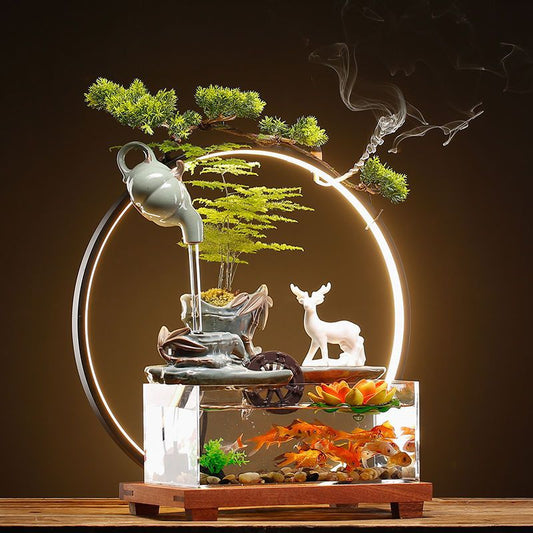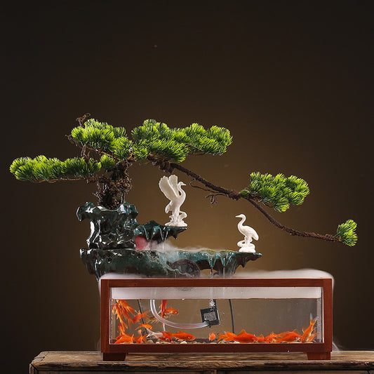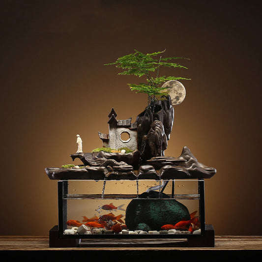Flowing Water Curtain Fish Tank Ceramic Fountain Aquarium Living Room Tabletop Ornament Office Decoration