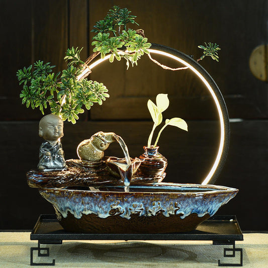 Lamp Creative Circulating Tabletop Fountains Waterfalls Ceramic Feng Shui Home Decoration LED Night Light