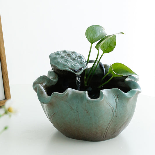 Lotus flowing water household fortune small fountain flowing water ornaments living room circulating water transfer office desktop humidifier decorations