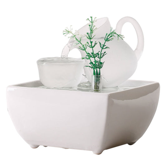 White Ceramic Indoor Fountain Chinese Retro Ceramic Water Fountain Desktop Temple Fountains Zen Vibe Office