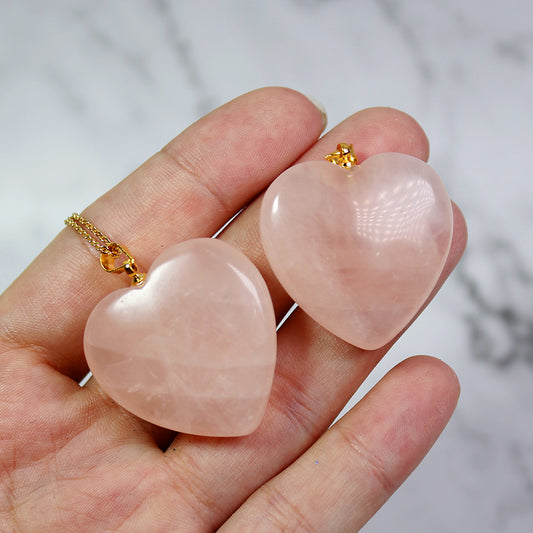 Natural Rose Quartz Gemstone Pink Crystal Heart Gold Plated Reiki Stone Chakra Pendant Necklace