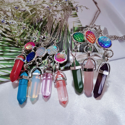 Crystal Hexagonal Pointed Gemstone Pendant Double Point Crystal Necklace