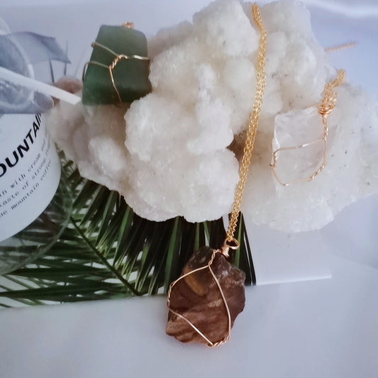 Raw Crystal Stone Pendant Necklace for Women Wire Wrapped Irregular Chakra Crystal