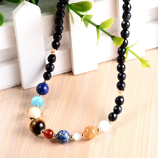 Solar System Necklace Natural Stone Galaxy The Eight Planets Guardian Star Bead Handmade Necklace