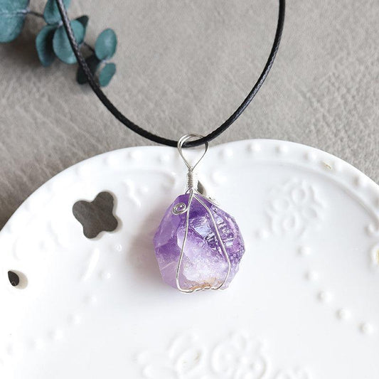 Amethyst Crystal Raw Pendant Necklace