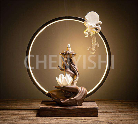 CHENYISHI Chinese Style Ornaments Large Ornaments For Living Room Creative Zen LED Lamp Circle Backflow Incense Burner