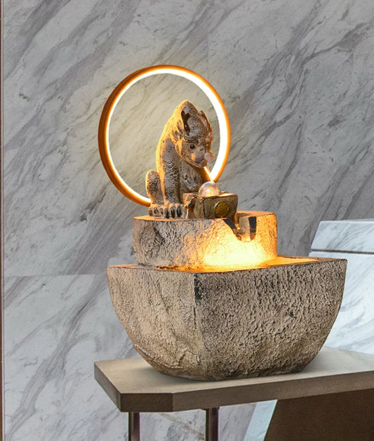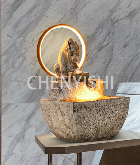 CHENYISHI Chinese Zen Style Flowing Water Wealth Ornaments Circulating Water Rockery Fountain Feng Shui Living Room Water Feature