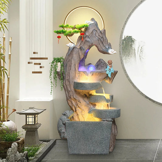 CHENYISHI Chinese Folk Bonsai Feng Shui Creative Decorative Landscape Waterfall Floor-standing Ornaments Water Fountain Gifts