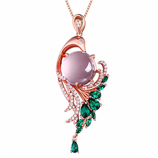 Exotic Rose Quartz Crystal Gemstone Natural Stone Phoenix Pendant for Men
