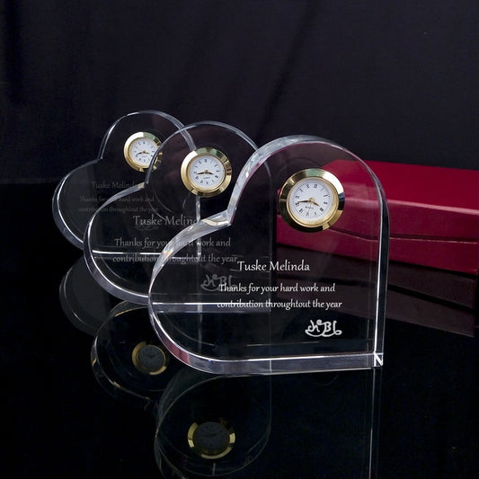 K9 crystal heart shaped clock 3d laser engraving crystal heart clock