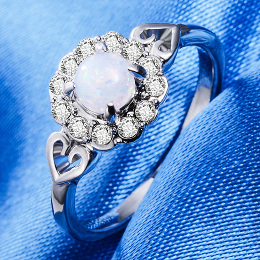 Fire Opal Rings Diamond Heart Rings Women's Jewelry