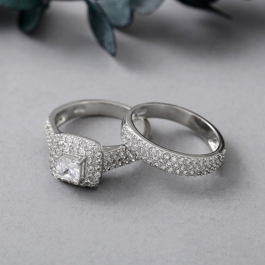 Brand New Wish Hotsale 2 pcs/set Full Diamond Square Cubic Zircon Wedding Rhinestone Crystal Cz Engagement Ring For Women