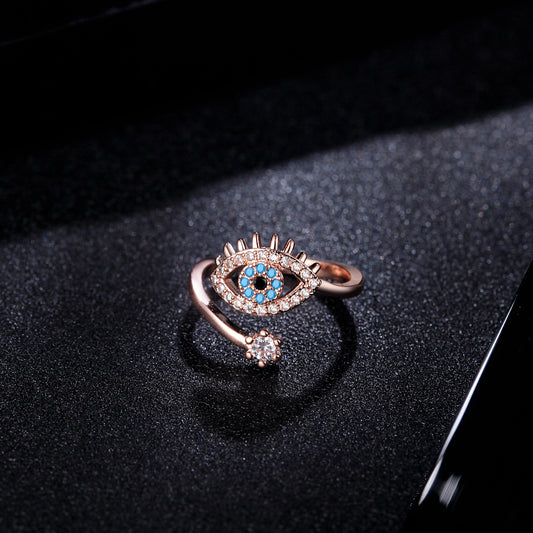 Gold plated rings jewelry women 18k evil eye crystal fashion finger ring open custom adjustable evil eye ring