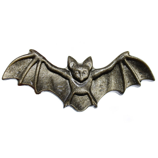 Precio al por mayor de murciélagos de cristal de obsidiana negra con brillo dorado natural para decoración de Halloween