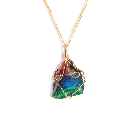 Venta al por mayor de collar con colgante envuelto en alambre de amatista natural con piedras curativas de cristales transparentes crudos