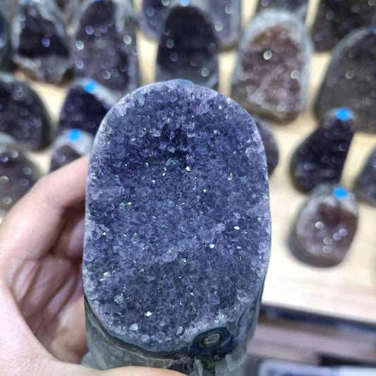Venta al por mayor, popular, de tamaño pequeño, con cristales naturales, con forma de agujero, para curación de geodas de amatista para decoración