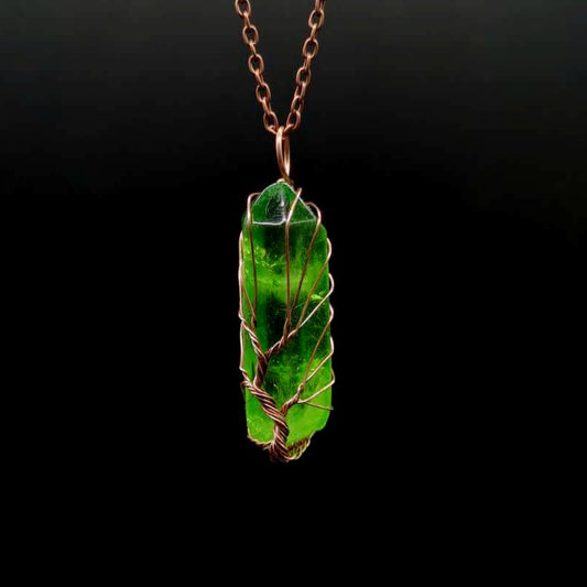 Colgante de cuarzo natural con cristales curativos y piedras de energía del árbol de la vida envuelto en alambre