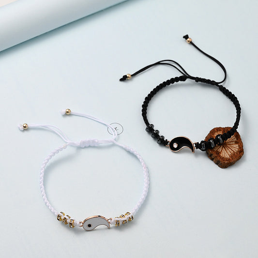 Pulseras y collares de la amistad de pareja Yin Yang Pulseras de cuerda ajustables con dijes de Tai Chi hechos a mano para regalos