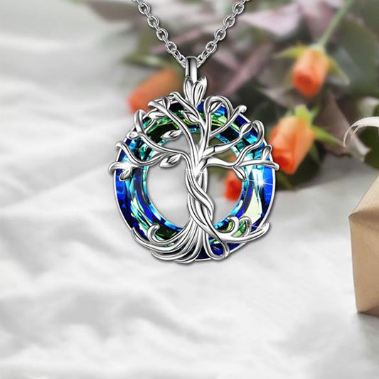 Collar con colgante del árbol de la vida de los 7 chakras y colgantes de diamantes de imitación para mujer