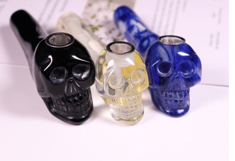 Pipas de tabaco de cristal tallado, artesanías de tallado de calaveras de piedra curativa natural