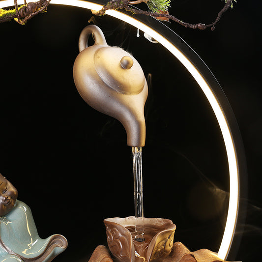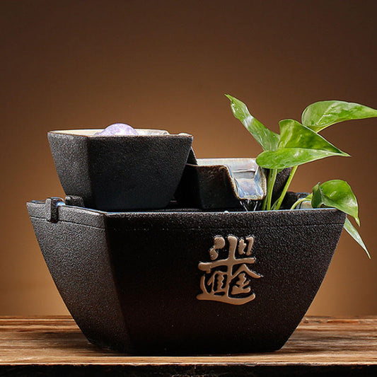 Los adornos creativos de cerámica con agua que fluye son prósperos en la sala de estar, atraen riqueza y adornos interiores del hogar.