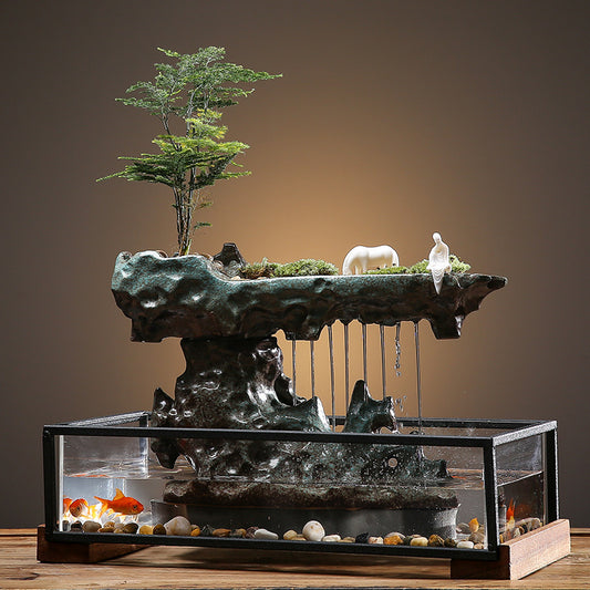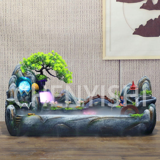 Fuente de agua Feng Shui con rociador de escritorio para oficina en casa, decoración húmeda y creativa de resina con simulación de paisaje rocoso para interiores