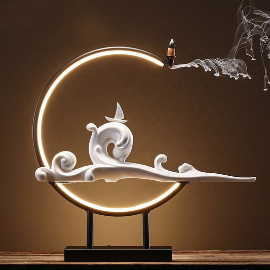 Quemador de incienso de madera con reflujo para decoración del hogar, soporte de incienso con forma de barco artificial chino tradicional