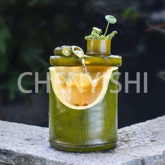 CHENYISHI Adornos creativos de agua circulante con tubos de bambú para atraer la riqueza Fuente Feng Shui Paisaje Sala de estar Fuentes de oficina