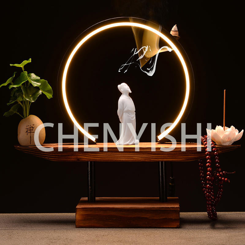 CHENYISHI Adornos de estilo chino Adornos grandes para sala de estar Lámpara LED zen creativa Quemador de incienso con reflujo circular