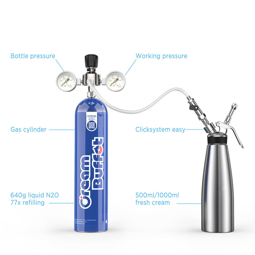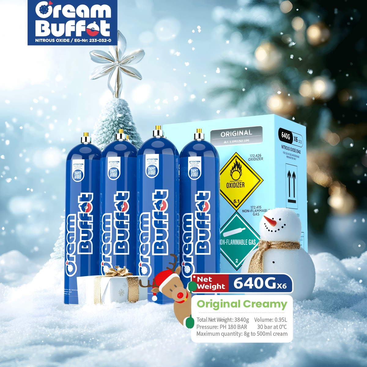 Crafted from premium, high-grade steel, this 640g Cream Buffet N2O canister is the lightest of its kind, designed for effortless handling in professional settings. Filled with 99.9% pure, food-grade N2O gas, it guarantees exceptional quality for whipping cream in restaurants, bars, and cafes. this canister ensures safety, reliability, and versatility. With various flavor options and compatibility with standard cream dispensers and pressure regulators, it’s the ideal solution for culinary professionals.