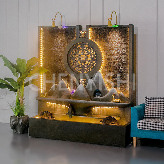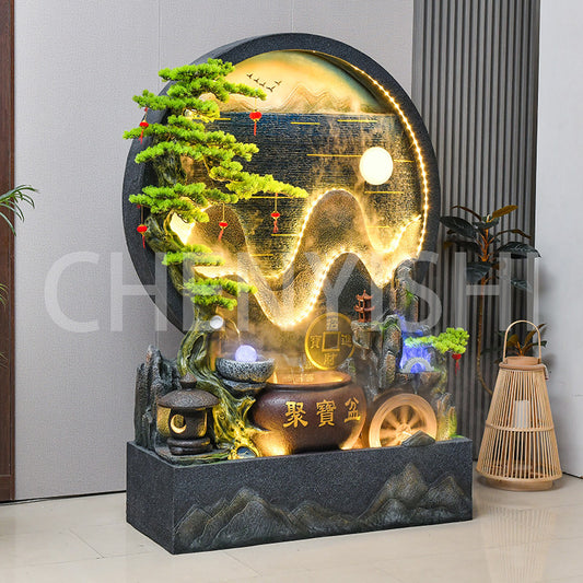 CHENYI Chinese Style Fountain Ornaments Wealth-making Feng Shui Wheel Humidifier High Mountain Circulation Waterscape Decoration